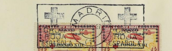 NOTA: El matasellos volvió a usarse para cancelar los nuevos sellos autorizados por Real Decreto de 6 de mayo de 1927 y puestos en circulación el 17 de mayo. |