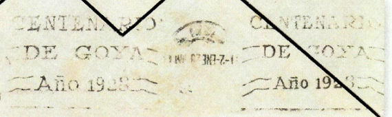NOTA: El texto empleado difiere del autorizado, que era: ZARAGOZA 1928 - CENTENARIO DE GOYA. |