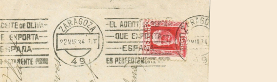 ADMINISTRACIONES PRINCIPALES Y CENTRALES TRANSPORTADO POR AVIÓN Solicitante: Líneas Aéreas Postales Españolas No se ejecutó la autorización, que se extendía del 27 de marzo de 1934 al 27 de marzo de 1935 y afectaba a Barcelona, Las Palmas, Madrid y Sevilla. En su lugar, se modificó el texto por nuevas leyendas, a partir de enero de 1935. |