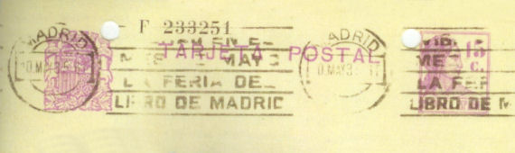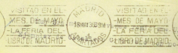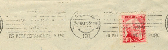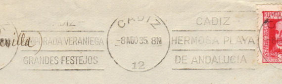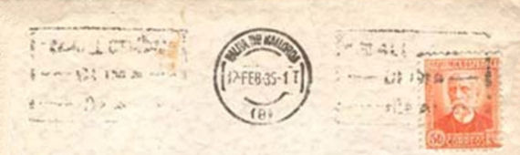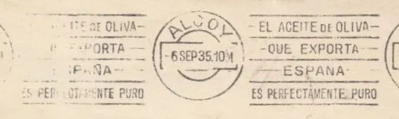 NOTA: En acta de Pleno Municipal de 15 de julio de 1935 (página 112) queda reflejado que "Seguidamente se da cuenta de un oficio de la Administración de correos de esta Ciudad transcribiendo oficio de la Gerencia de los Servicios Postales en el cual se autoriza a este Ayuntamiento a insertar en la maquina de matasellos de esta Administración de Correos la inscripción Albacete Gran Feria y Fiestas en el mes de septiembre durante los días 7 al 20, siendo de cuenta del Ayuntamiento, los gastos de la inserción del citado anuncio. El Ayuntamiento por unanimidad acordo quedar enterado".