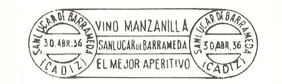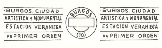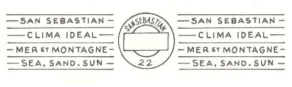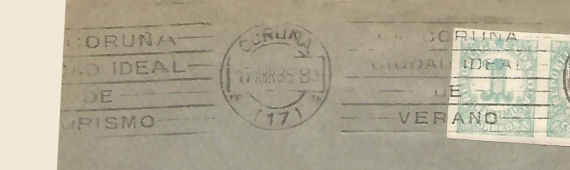 NOTA: Aunque la autorización era para el lema "Galicia paraíso del turista. - Santiago de Compostela ciudad artística y monumental.- 1937 año Santo en Santiago de Compostela.- Santiago de Compostela ciudad de Turismo", el único rodillo que conocemos reproduce solo la mitad. La primera parte del texto, previsiblemente, no se llegó a emplear. |