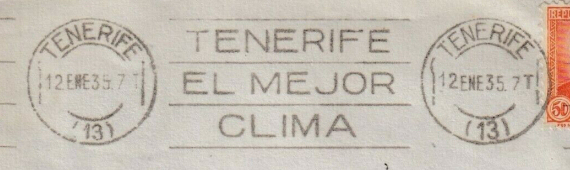 NOTA: La leyenda empleada difiere de la aprobada: GRAN CANARIA.-- INVIERNO, TEMPERATURA, 18,1. Además, aunque la autorización permitía utilizar los textos en inglés, francés y alemán, no conocemos su empleo. |