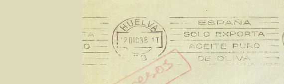 ADMINISTRACIONES PRINCIPALES Y CENTRALES ESPAÑA · SÓLO EXPORTA · ACEITE PURO · DE OLIVA Se autorizó en 1927. HUELVA