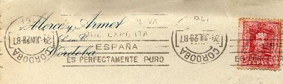 En nuestra opinión, el rodillo debía tener algún problema al girar y estampaba el fechador de manera defectuosa, como puede observarse en la imagen siguiente, de 3 de octubre de 1929, en la que no aparece la línea sobre CORDOBA que refiere Andrés Muñoz y el fechador de la derecha aparece muy deformado.