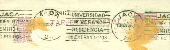 JACA (HUESCA) JACA · CLIMA IDEAL DE VERANO · CENTRO DE EXCURSIONES Solicitante: Sindicato de Iniciativas de Jaca La autorización inicial, que no incluía la expresión CENTRO DE EXCURSIONES, se prorroga hasta finales de 1936.