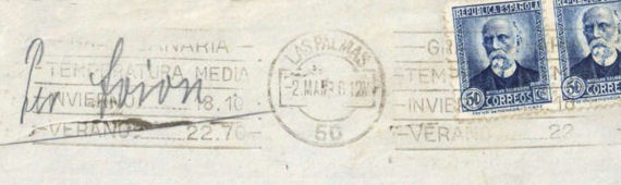 GRAN CANARIA · TEMPERATURA MEDIA · INVIERNO 18,10 · VERANO 22,70 Solicitante: Junta Provincial del Turismo Los primeros pasos para conseguir un matasellos que promocionara la isla de Gran Canaria nacen de la Junta Provincial de Turismo, que, en octubre de 1933, acordó "Abrir un Concurso, con premio único de cien pesetas, entre artistas canarios, para el mejor modelo que se presente para matasellos de Correos, con viñeta e inscripción relativa a propaganda turística". Se hace eco de esa decisión la Gaceta de Tenerife, en su edición de 30 de octubre de 1933. La leyenda empleada difiere de la aprobada: GRAN CANARIA.-- INVIERNO, TEMPERATURA, 18,1. Además, aunque la autorización permitía utilizar los textos en inglés, francés y alemán, no conocemos su empleo.