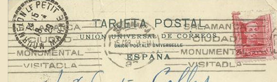 SALAMANCA SALAMANCA · CIUDAD · MONUMENTAL · VISITADLA Solicitante: Junta de iniciativas de Salamanca La solicitud de la Junta de Iniciativas fue "Salamanca, la ciudad más monumental de España", pero ese tipo de enunciados no eran aceptados por la Dirección General de Correos que lo susbstituyó por "Salamanca, ciudad monumental. Visitadla". La autorización inicial se prorrogó, sucesivamente, hasta 1931, aunque variando la entidad peticionaria al Patronato Nacional de Turismo de Salamanca. TIPO 1