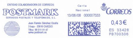POSTMARK - SERVICIOS POSTALES Y TELEFÓNICOS, S.L. Juan Sánchez Ocaña, 3 bajo |