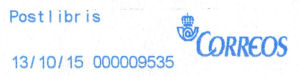 Uno de los componentes de la impronta azul es la denominación del producto postal. Lo encontramos a la izquierda del logo de Correos. Las máquinas Pitney Bowes (PB) presentan el texto centrado entre la fecha y el contador, mientras que las otras marcas lo hacen alineado a la izquierda. Las categorías que hemos localizado, de una larga lista, se muestran bajo estas líneas. AR = Aviso de recibo |