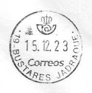 17.feb.1975 > Valentín Álvaro García, Cartero de enlace, recibe la Medalla de Plata al Mérito Postal. 1.nov.1980 > José Herranz Alguacil. 26.dic.1983 > José Herranz Alguacil cesa por traslado a la Oficina de Molina de Aragón. 27.mar.1984 > Sale a concurso como ER en moto. 24.jul.1984 > Sale a concurso como ER en moto. 27.sep.1984 > Sale a concurso como ER en moto. 27.nov.1984 > Sale a concurso como ER en moto. 25.ene.1985 > Sale a concurso como ER en moto. 27.mar.1985 > Sale a concurso como ER en moto. 27.may.1985 > Sale a concurso como ER en moto. 30.ene.1986 > Sale a concurso como ER en moto. 17.abr.1986 > Sale a concurso como ER en moto. 28.may.1986 > Sale a concurso como ER en moto. 15.oct.1986 > Sale a concurso como ER de tipo A en moto. 8.mar.2019 > En activo. |