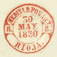 La demarcación RIOJA incluía: Administración Principal de Logroño. Alfaro, Calahorra, Haro, Nájera, Navarrete y Santo Domingo de la Calzada. Belorado, Briviesca, Frías y Villarcayo, subalternas de Burgos. Miranda de Ebro, subalterna de Vitoria. Arnedo, Medina de Pomar, Pancorbo y Soto. Se crean a partir de 1847, en fecha indeterminada. Torrecilla de Cameros. Se integró en la demarcación, en 1853, desde la de SORIA. |
