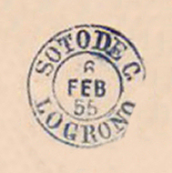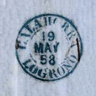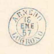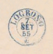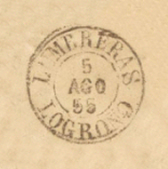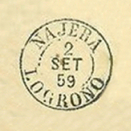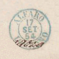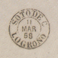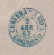 La reforma de 1854 comporta el ascenso de categoría de la cartería de Ezcaray a estafeta de 6ª clase, pero aún así no recibió el fechador correspondiente, por lo que se dotó de una marca particular para indicar el origen de la correpondencia. Se empleó entre 1855 y finales de 1858, encontrándose estampaciones en azul y en negro.