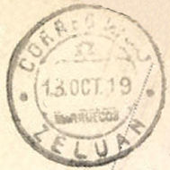 El Boletín Oficial de Correos de 1 de mayo de 1918 publica la organización del servicio postal de la zona del Protectorado español en Marruecos, que, bajo la dirección de la Delegación de Fomento de la Alta Comisaría, se organiza en tres zonas, aunque equivoca la adscripción de Zeluán y Tetuán.