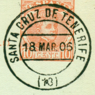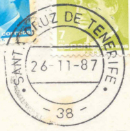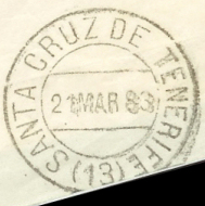 Canarias recibió la demarcación 13 a partir de la organización iniciada con la Circular de 18 de enero de 1878 que distribuyó los fechadores conocidos como Trébol. El Real Decreto de 21 de septiembre de 1927 divide la provincia de Canarias y nacen las de Santa Cruz de Tenerife, que hereda el código 13, y la de Las Palmas, que recibe el 50. El Real Decreto 1794/1982, de 9 de julio, establece el Código Postal para la clasificación de correspondencia. La Orden de 23 de enero de 1984 reordena los códigos provinciales, asignando a Santa Cruz de Tenerife el prefijo 38. |