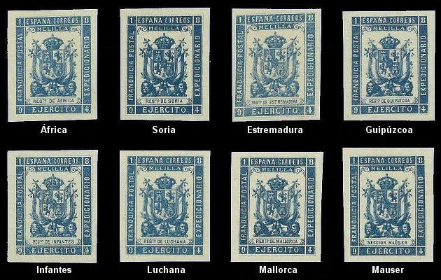 Serie dedicada a diversos Regimientos de Infantería (África, Soria, Estremadura, Guipúzcoa, Infantes, Luchana y Mallorca) y a la sección Mauser. Se encuentran ejemplares en azul o azul oscuro. |
