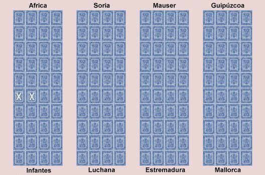 Obsérvese que en bloque de Infantes, en las posiciones 1 y 2, se incrustaron dos sellos del Mauser. |