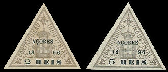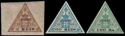 La emisión de sellos fiscales de Azores es coincidente con la de Portugal con la única variación del nombre del archipiélago ( AÇORES) en sobrecarga. Cada año se emitieron 27 valores entre 2 y 20.000 reis |