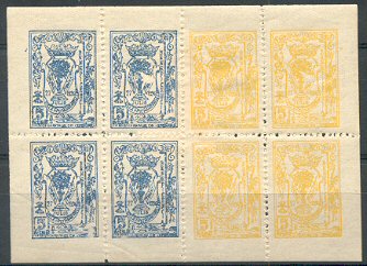 Hojas de 8 sellos. Los 4 de la izquierda de un color